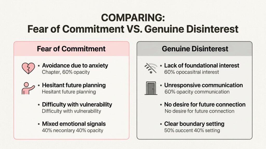 | Sign | Fear of Commitment | Genuine Disinterest |
